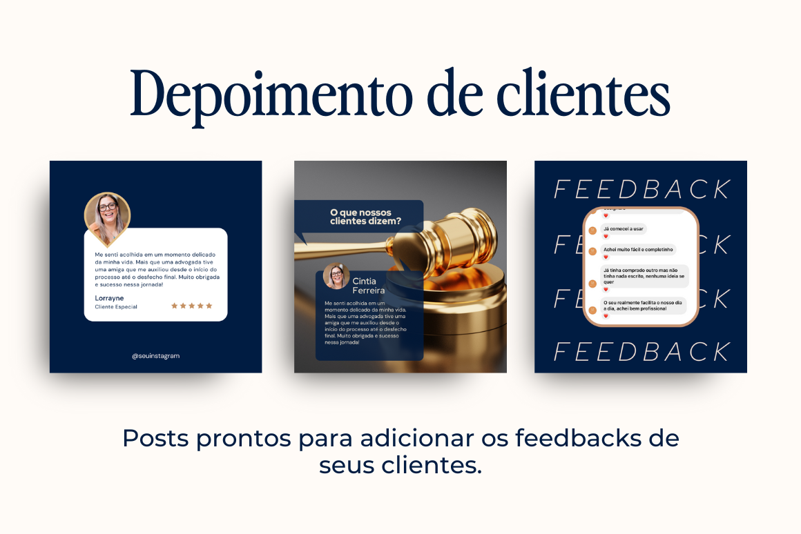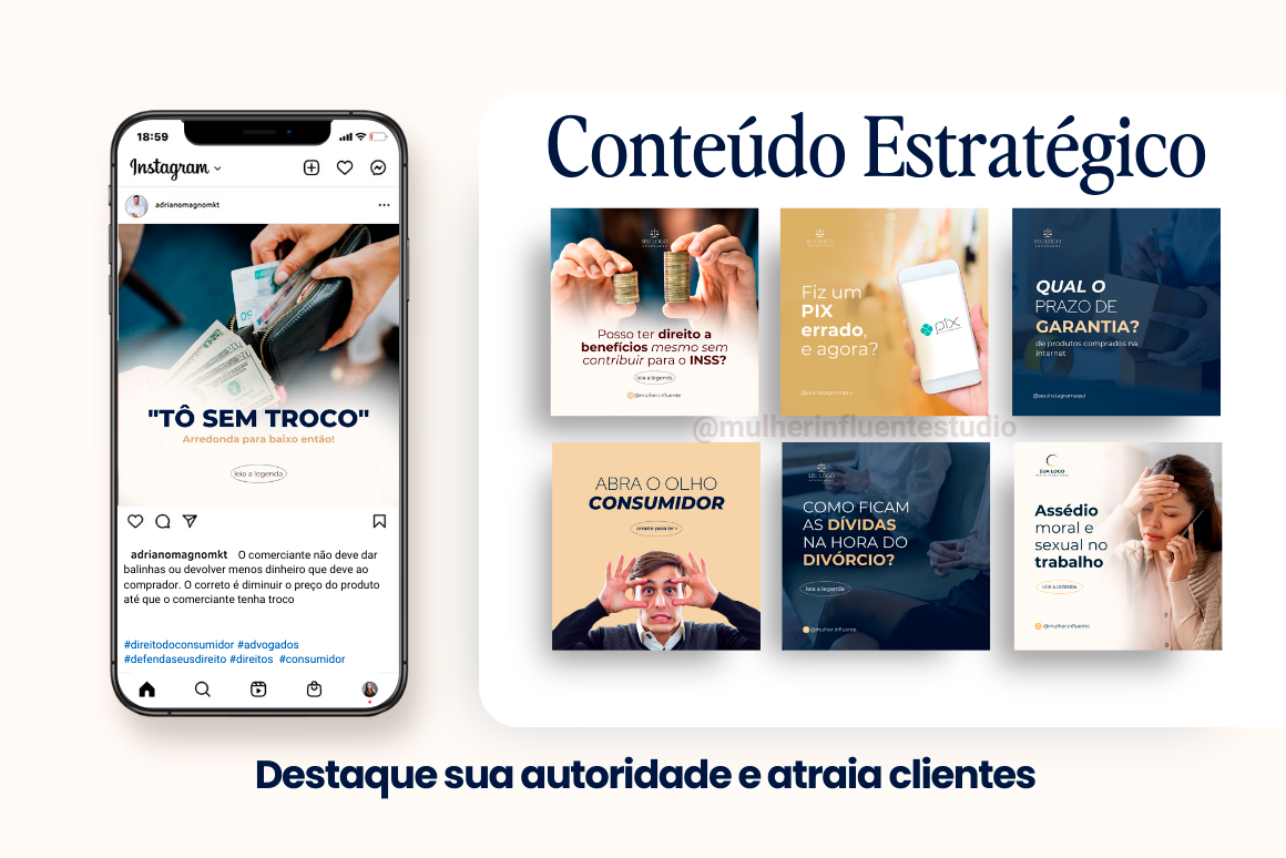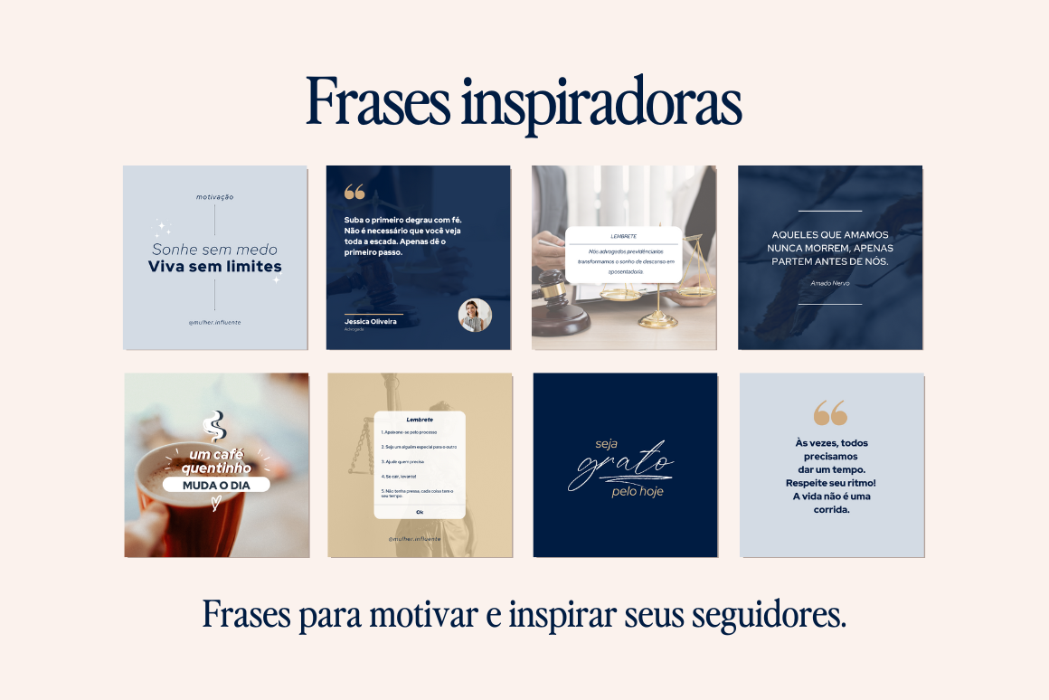 Você terá acesso a nosso catálogo de paletas de cores com os tons mais indicados para advogados que vão deixar seu feed com muito mais autoridade e elegância.