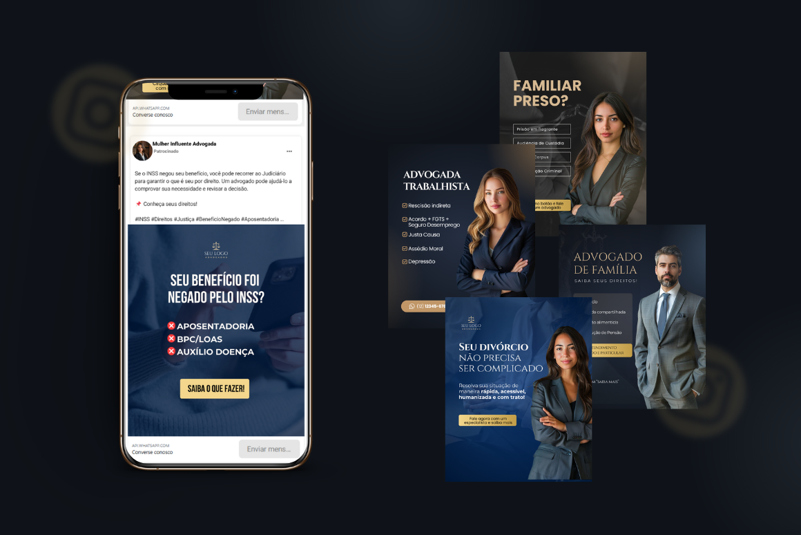 Criativos prontos e personalizáveis, ideais para campanhas no Instagram, Facebook e Google Ads, ajudando você a alcançar clientes qualificados